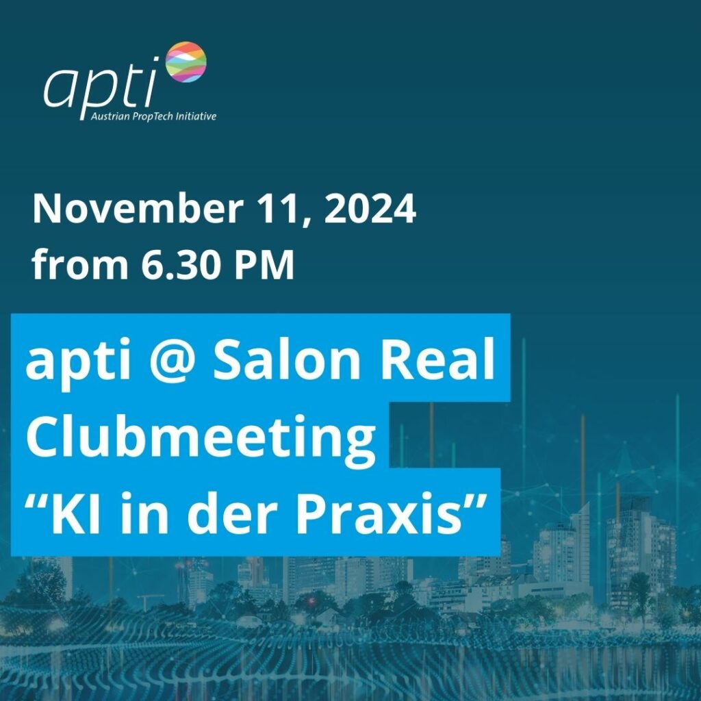 Im Zuge des Salon Real Clubmeetings am 11. Novemeber zum Thema „KI-Lösungen aus der Praxis“ dürfen wir Lösungsanbieter aus dem Real Estate Bereich vor Ort vorstellen.